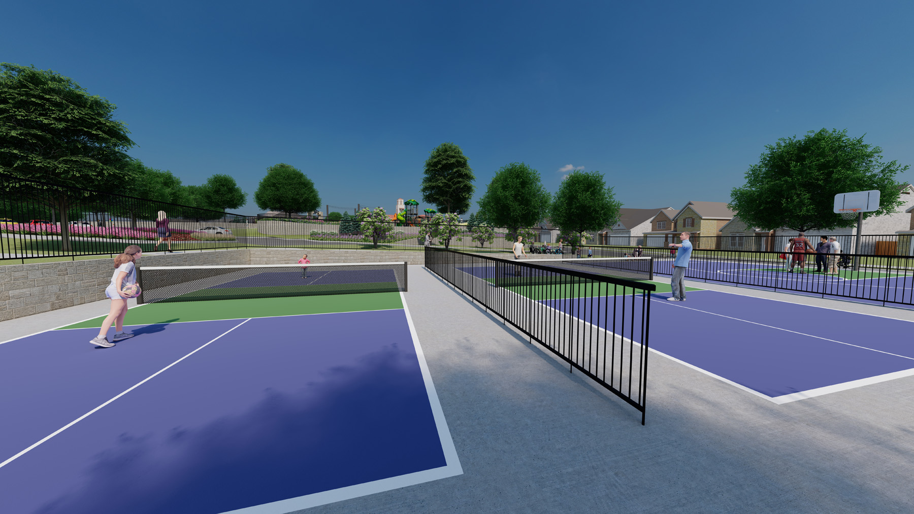 That’s right! Monterra has not one but two pickleball courts for picklers of all ages. Pickleball is a perfect family game because it’s easy to learn and great for bonding. It combines elements of tennis, badminton, and ping-pong, making it a fun challenge for everyone. Pickleball promotes physical activity, teamwork, and healthy competition. Plus, with its slower pace and smaller court, it’s less intimidating than some other sports, allowing grandparents, parents, and kids to enjoy playing together.